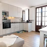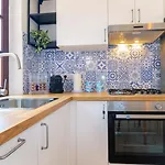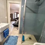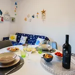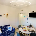 L'appartement offre aux hôtes un balcon et un coin salon et donne sur la mer. L'hébergement est aménagé avec du parquet carrelé. De plus, la résidence vient avec un bidet et une douche dans la salle de bain. Un sèche-cheveux, des articles de toilette gratuits et des draps de bain sont disponibles.